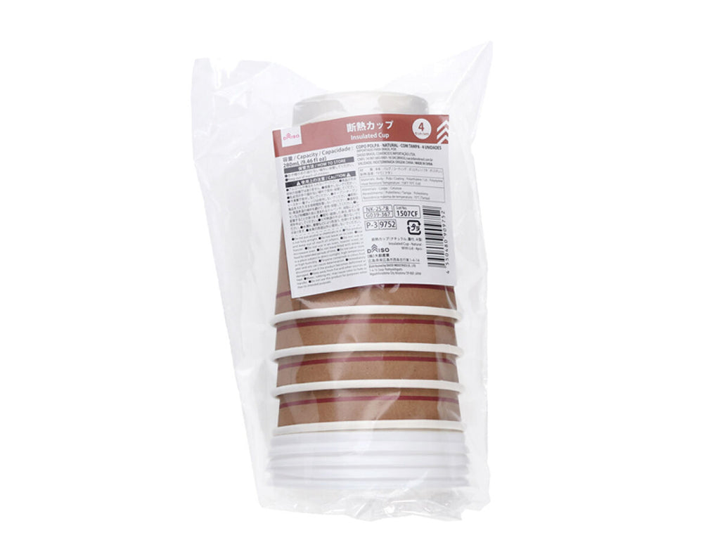 断熱カップ(ナチュラル、蓋付、4個)280mL