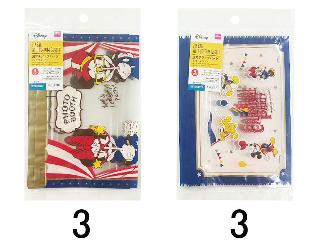 底マチジップバッグ、4枚(ミッキー&フレンズ)18cm×12cm×5cm