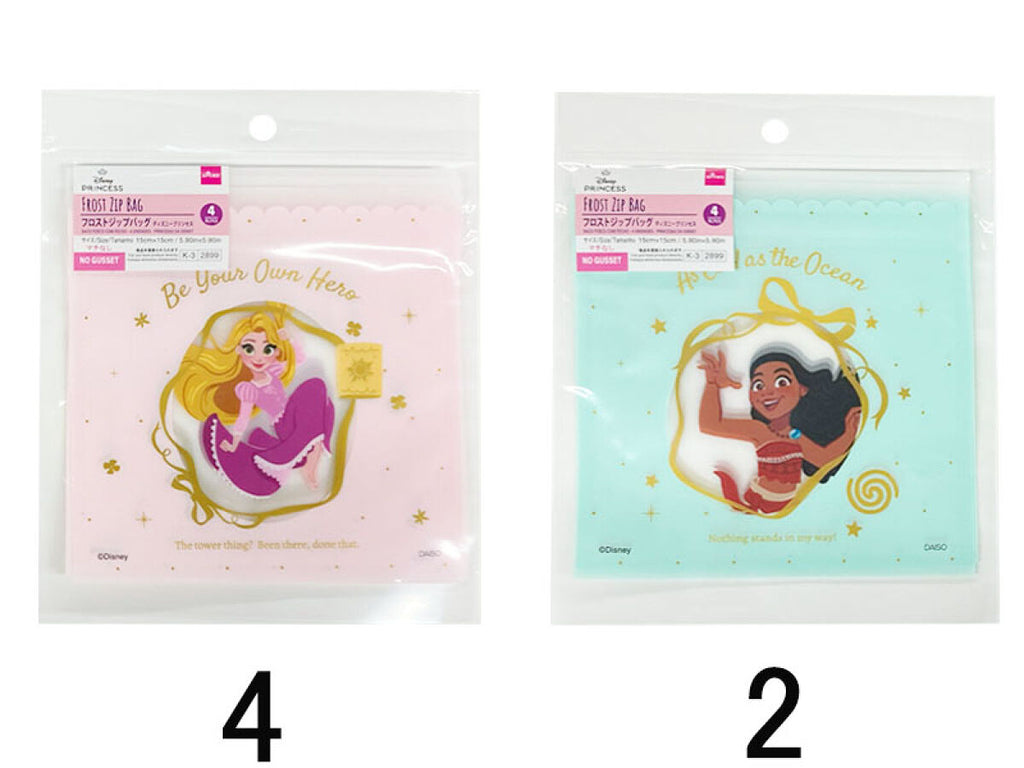 フロストジップバッグ、4枚(ディズニープリンセス)15cm×15cm
