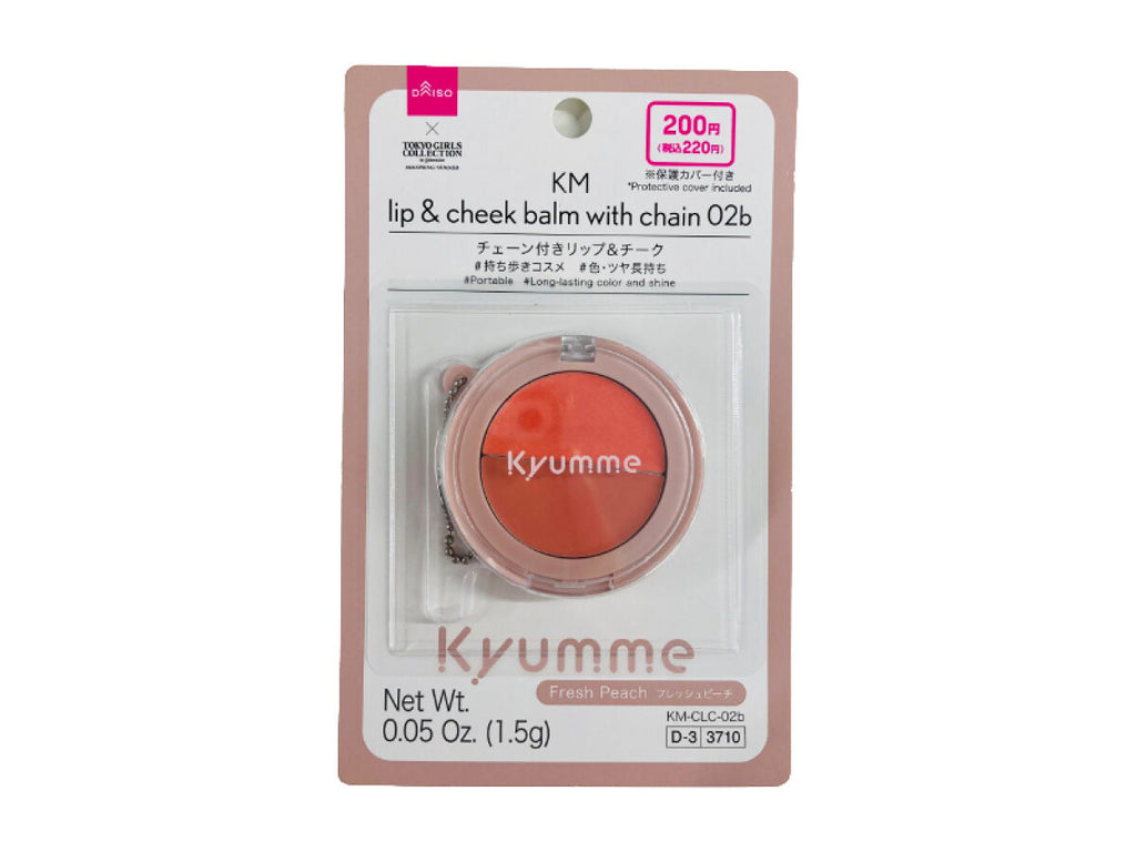 - 商品説明:チェーン付きリップ&チーク_※保護カバー付き_#持ち歩きコスメ_#色・ツヤ長持ち_フレッシュピーチ_Net_Wt._0.05_Oz._1.5g_KM CLC 02bチーク、リップバッグなどに付けられるチェーン付きのリップ&チーク。唇と頬にヘルシーなツヤ感をプラスできます。少しずつ重ねていくことで自分好みの発色に調整できます。外出先のお直しにもぴったり。指先に適量をとり、唇や頬にポンポンと優しくあてながら重ねます。_※持ち運ぶ際は、チェーンが正しく留まっているか、蓋がしっかり閉まっているかよくご確認の上、付属のカバーを必ずつけてご使用ください。_※衣類などにつくと落ちませんのでご注意ください。_●肌に異常が生じていないかよく注意して使う。肌に合わない時や、使用中、赤味、はれ、かゆみ、刺激、色抜け(白斑等)や黒ずみ等の異常が出た時、また、日光があたって同じような異常が出た時は、使用を中止して皮膚科医へ相談する。使い続けると症状が悪化する場合がある。●傷やはれもの、しっしん等、異常のある部位には使わない。●目に入らないよう注意。●落下等の衝撃に注意。●使用後はしっかり蓋をしめる。●乳幼児の手の届かないところに保管。●極端に高温又