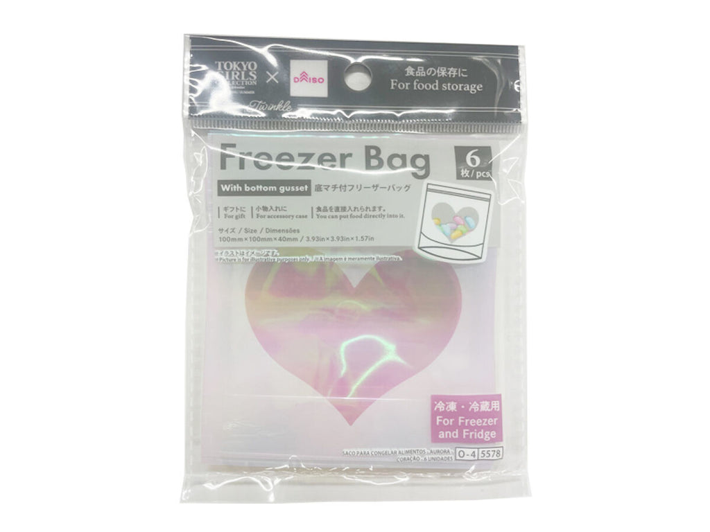 フリーザーバッグ(オーロラ、ハート、6枚)縦10cm×横10cm×マチ4cm