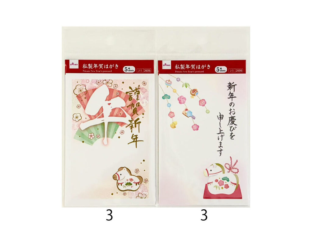 私製年賀はがき(干支文字・干支縁起物、5枚)