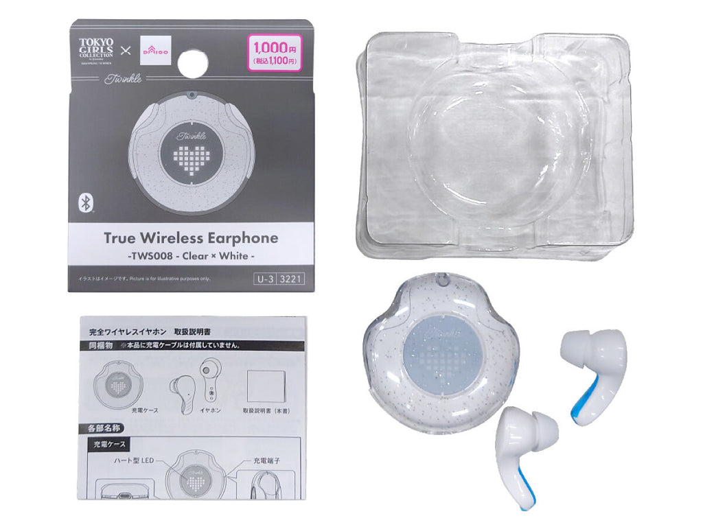 完全ワイヤレスイヤホン(TWS008、クリア×ホワイト)