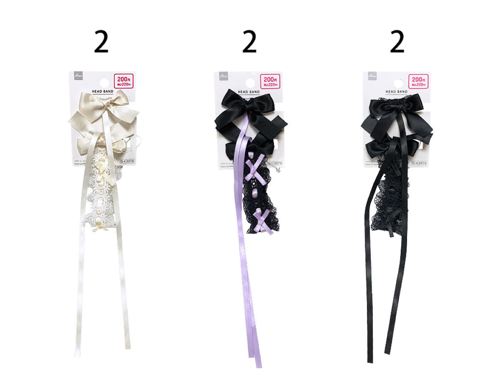 フラワーレースリボンヘアバンド(クリップ付、細め)