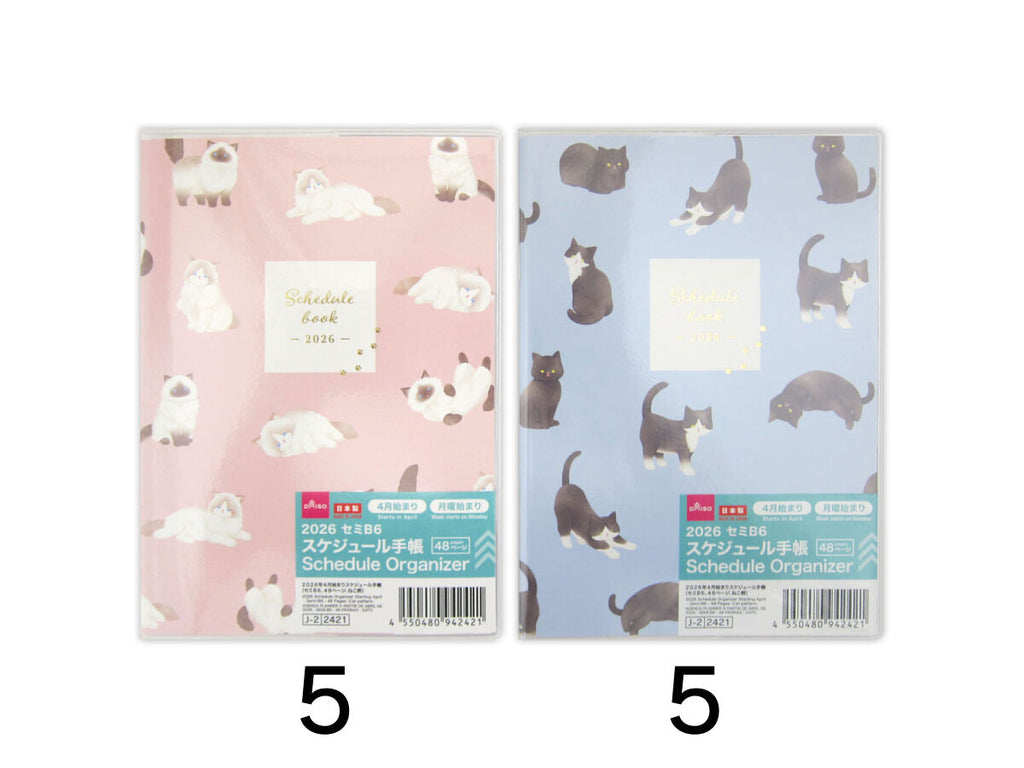 2026年4月始まりスケジュール手帳(セミB6、48ページ、ねこ柄)