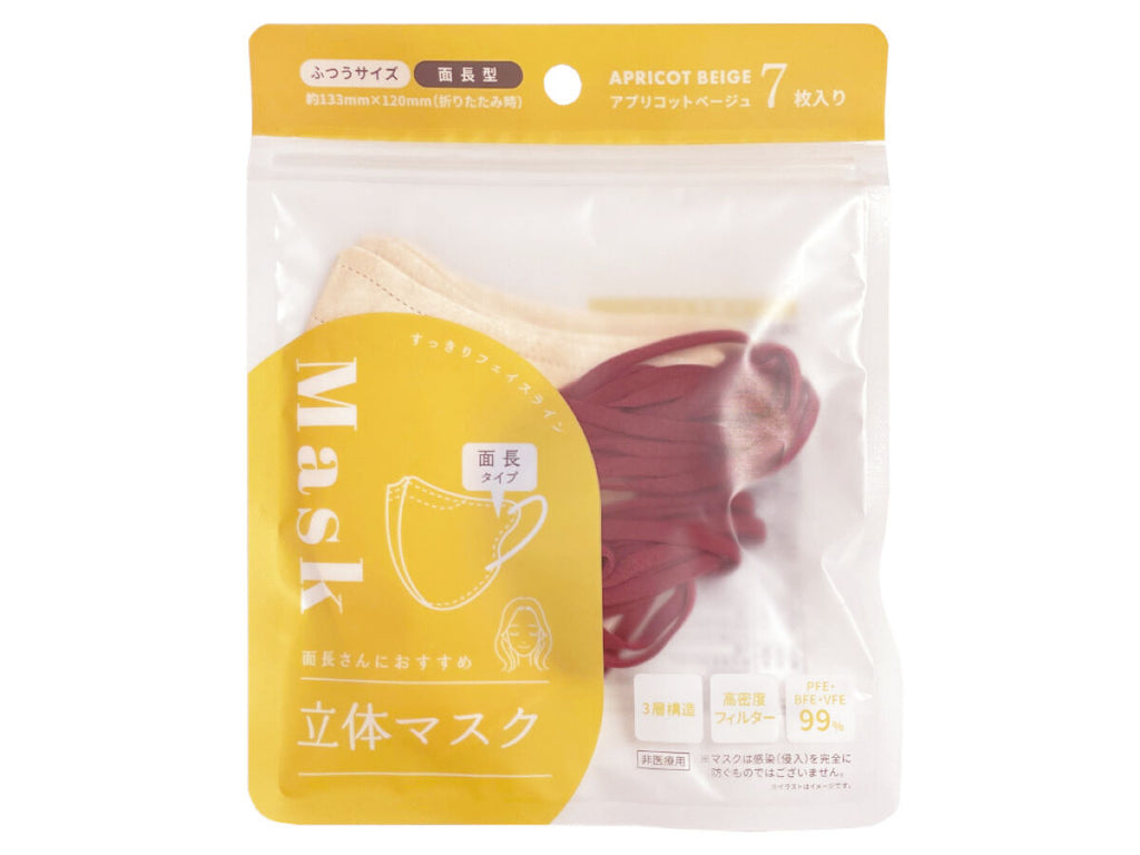 立体マスク7枚入り・面長型 アプリコットベージュ