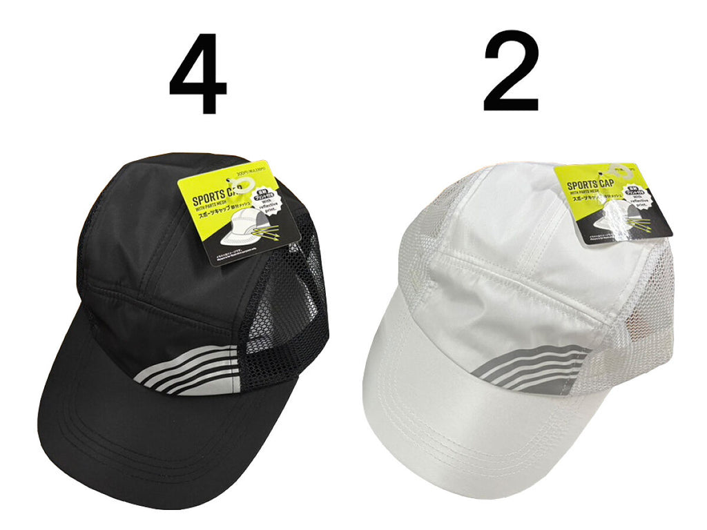 スポーツキャップ(部分メッシュ、反射プリント付)