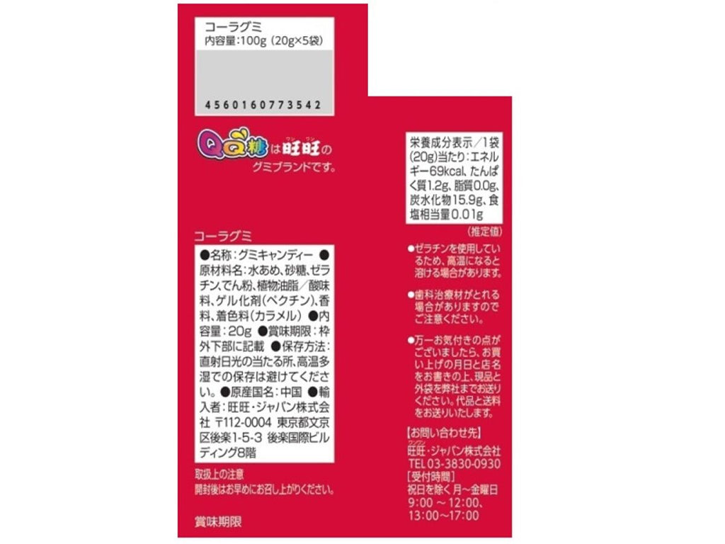 旺旺ジャパン コーラグミ 5連 20g×5袋100g×1個入