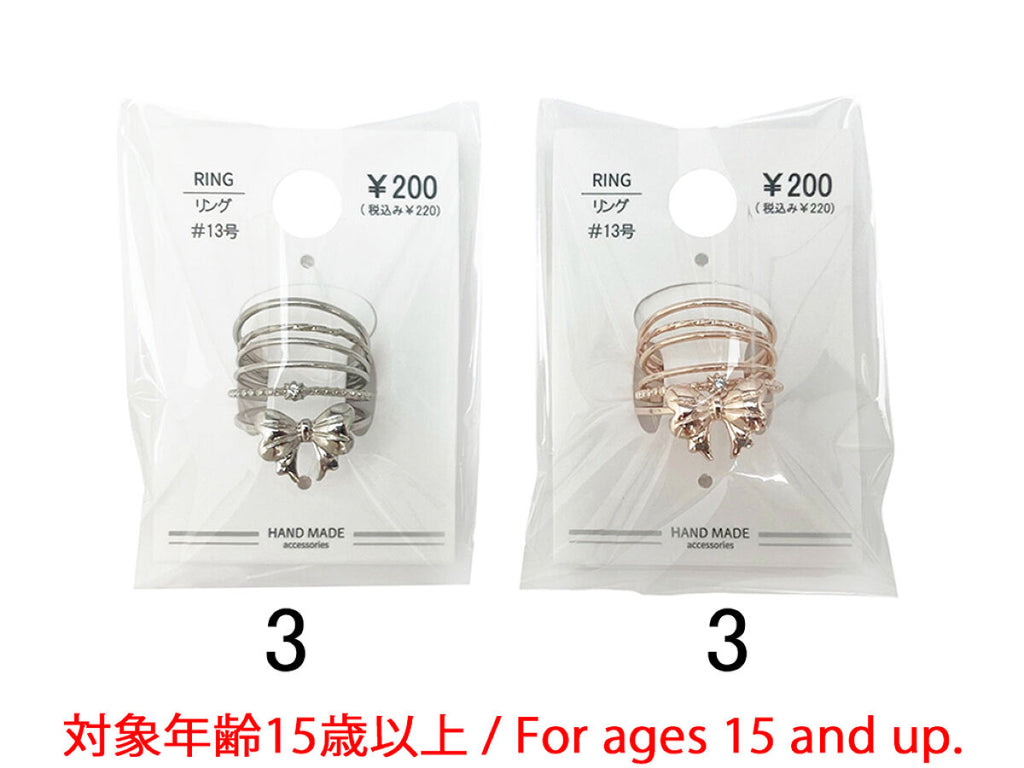 - 単品サイズ:①リング:内周5.3㎝×幅0.1㎝×厚さ_0.1㎝、②リング:内周5.3㎝×幅0.1㎝×厚さ_0.1㎝、③リング:内周5.3㎝×幅0.1㎝×厚さ_0.1㎝、④リング:内周5.3㎝×幅0.3㎝×厚さ_0.3㎝、⑤リング:内周5.3㎝×幅0.1㎝×厚さ_0.1㎝ トップ:縦1.2㎝×横1.1㎝×厚さ0.3㎝