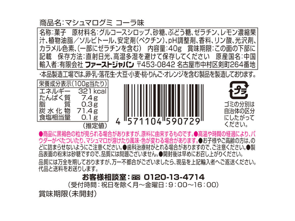 ファーストジャパン マシュマログミ コーラ味 40g40g×1個入