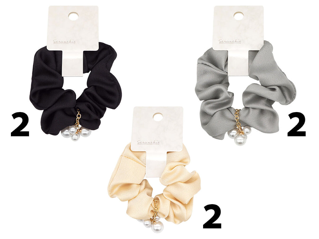 シュシュ(ソフトサテン、フェイクパール付、ベーシックカラー)
