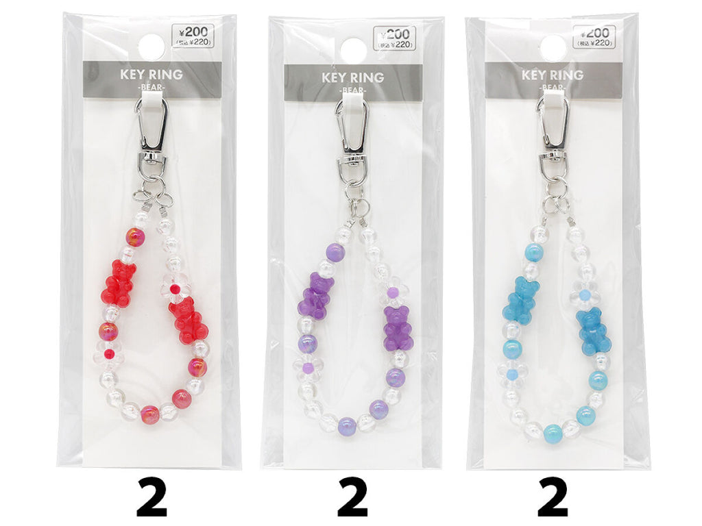ベアモチーフビーズキーホルダー(赤、紫、青)