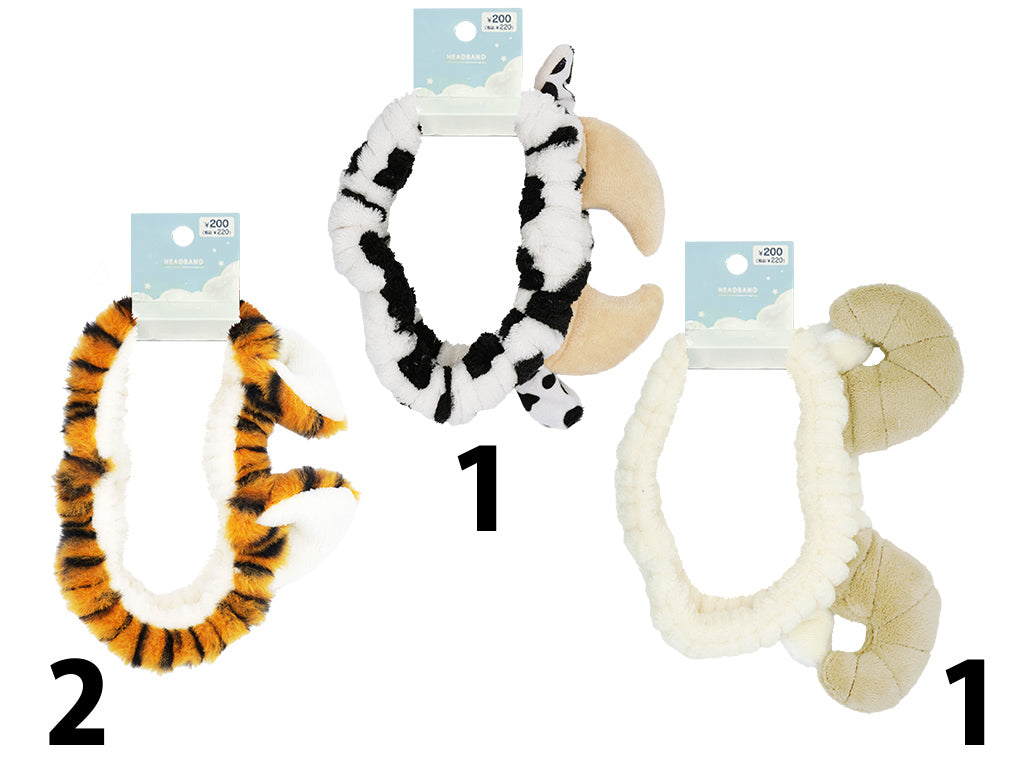 アニマル耳ふわふわヘアバンド(トラ、ウシ、ヒツジ)