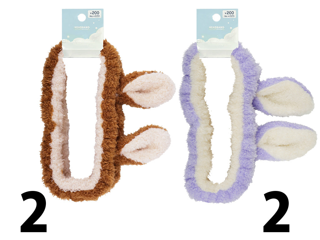 うさ耳ふわふわヘアバンド(紫、茶)