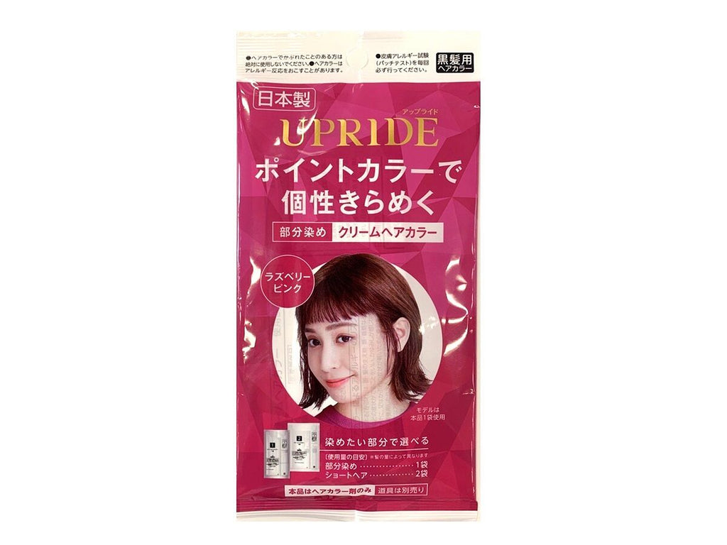 - 商品説明:日本製 アップライド ポイントカラーで個性きらめく 部分染め クリームヘアカラー ラズベリーピンク モデルは本品1袋使用 染めたい部分で選べる 使用量の目安 ※髪の量によって異なります。 部分染め1袋 ショートヘア2袋 本品はヘアカラー剤のみ 道具は別売り黒髪用ヘアカラー1袋分の目安量は部分染め1回分です ※黒めの髪も染まりますが、色味はあまり感じられません。●ご使用の際は使用説明書をよく読んで正しくお使いください。 ●染毛の2日前(48時間前)には、毎回必ず皮膚アレルギ一試験(パッチテスト)を行ってください。 1・1剤、2剤の本体部分を全量混合します。 2・コーム付きカラーリングブラシで乾いた髪になじませます。 【目安時間】塗布10分+放置20分 3・20分放置した後よくすすぎ、シャンプ一、コンディショナ一等をします。必ずご購入前・ご使用前にお読みください。 ●ご使用の際は使用説明書をよく読ん 正しくお使いください。 ●次の方は使用しないでください。_ o今までに本品に限らずヘアカラ一で かぶれたことのある方 o今までに染毛中または直後に気分の 悪くなったことのある方 o皮膚アレルギ一試験(パッチテスト