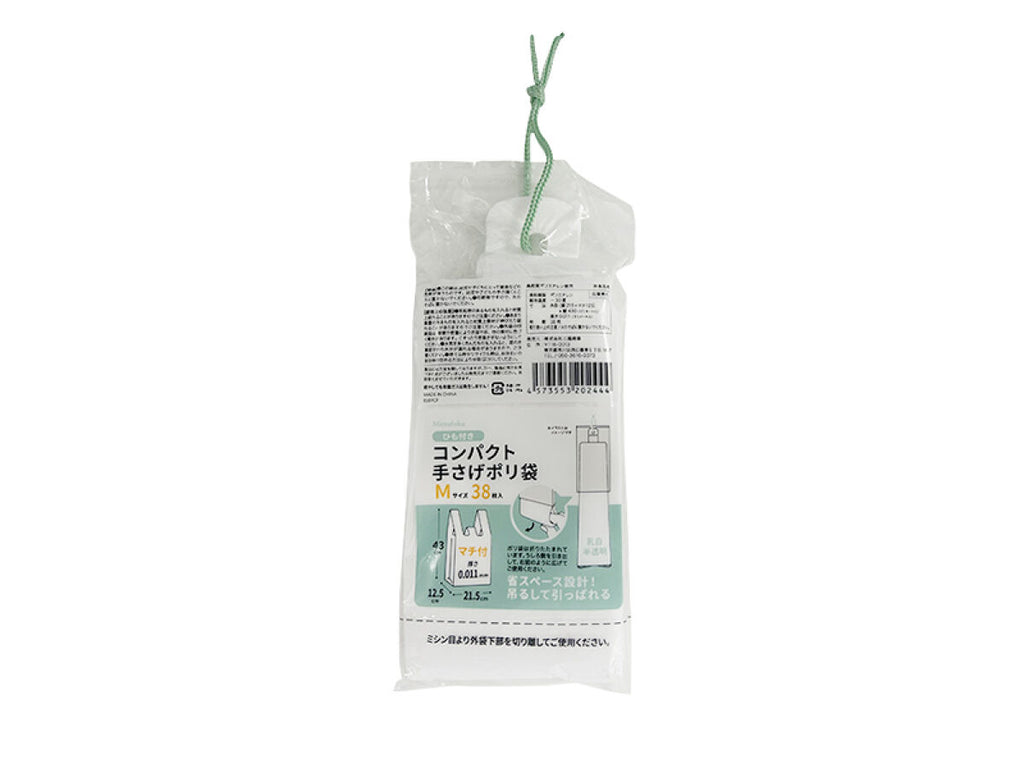 ひも付きコンパクト手さげポリ袋 Mサイズ 38枚入
