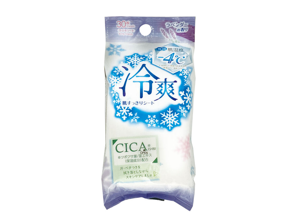 - 商品説明:●瞬間肌温度_4℃_※3回拭いた直後の肌表面温度(室温27℃、湿度75%)●汗・ベタつきを拭き落としながらスキンケアしましょ●汗ふきシート●肌すっきりシート●ニオイ・汗 拭きとり●CICA(シカ)エキス_配合_ツボクサ葉/茎エキス(保湿成分)配合●肌のベタつき・汗・皮脂を拭きとる。●芳香によるマスキング効果でニオイを低減。●スポーツの後、通勤・通学、外出先など汗をかいた後に。●勉強・仕事・運転の合間など、リフレッシュしたいときに。●メントール配合でスッキリ爽快●メントール配合で、さっぱり爽快な使い心地。●やさしく、しっかり拭けるメッシュシート。●5.51in×7.87in(140mm×200mm)●ポリエステル、レーヨン●ラベンダーの香り●販売名:ボディシート DA-e_ふき取り用化粧水●パッケージ表面のオープンラベルをめくり、1枚ずつシートを取り出します。●使用後はオープンラベルをしっかりと閉めてください。_●お子様の手の届かない場所に保管してください。●直射日光・高温多湿の場所は、避けてください。●本品は水に溶けません。トイレに流さないでください。●本品は汗等の拭き取り用ウェットティッシュです。家具・電気製品等を拭かな
