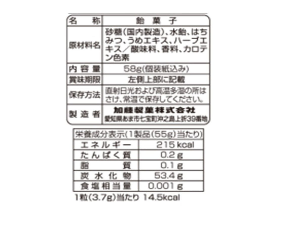 加藤製菓 梅はちみつのど飴 58g58g×1個入