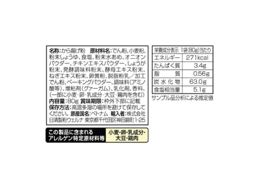 日清製粉ウェルナ 秘伝のから揚げ粉しょうゆ味 80g80g×1個入▲賞味期限26年7月1日