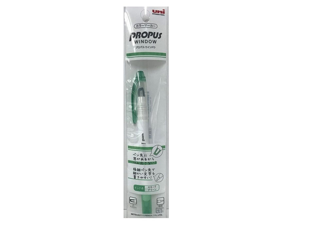 - 商品説明:カラーマーカー_プロパスウインドウ_スモークカラー_インク色_スモークグリーン_太字角芯+極細丸芯_筆記線幅_太4.0mm極細0.4mm_窓あきペン芯を採用していますので、文字が確認でき、チェックの際ラインの引きすぎが防止できます。_極細ペン先のプラペン芯なので、細かい文字が書き続けられます。_1本で太(オーバーライン)と極細(文字書き&アンダーライン)に使い分けられます。_水性顔料インクを採用しています。