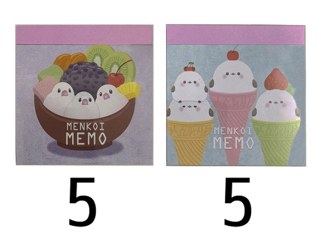 - 商品説明:透明カバーがついたファンシー柄のメモパッド。80×80ミリ 100枚。メモパッド文鳥とシマエナガのアソート。小型で使いやすい正方形です。紙で手をきらないようにご注意ください。