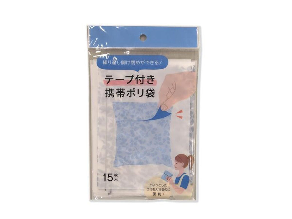 テープ付き携帯ポリ袋(15枚、ブルーフラワー)その他×15枚入