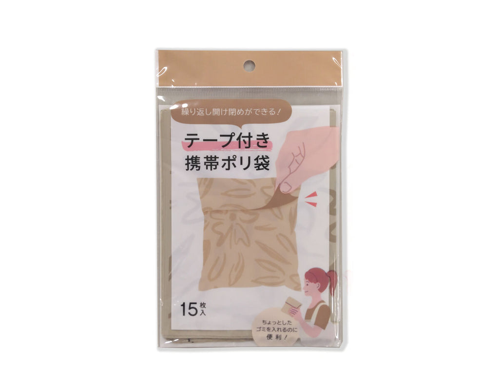 テープ付き携帯ポリ袋(15枚、ベージュフラワー)その他×15枚入