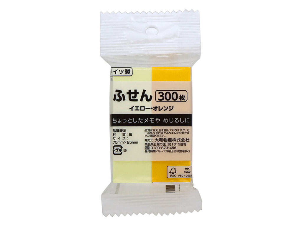 ふせん(イエロー・オレンジ、300枚)75mm×25mm