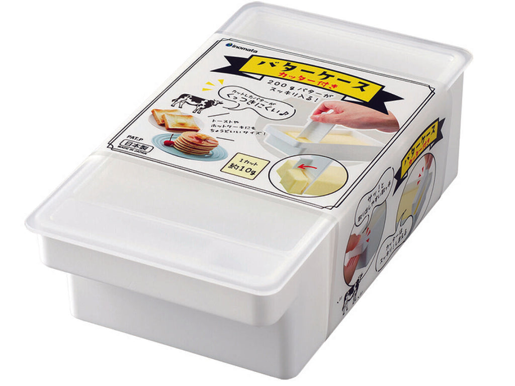 - 商品説明:20gのバターがスッキリ入る、バターカッター付き保存ケース。バターを1gづつカットできる。 バターカッターはそのままバターケースにスッキリしまえる。 耐熱温度8℃ 耐冷温度-2℃ バターをいれてフタをして冷蔵庫保存する。食器洗剤で洗う。初めてご使用の際は中性洗剤で洗浄し乾燥させてからご使用ください。完全密封ではないので保存の際は横置きにしないでください。バターをカットする際は必ず冷蔵庫で冷やしたバターをお使いください。バターカッターは熱したフライパンなどに触れると変形の原因となります。