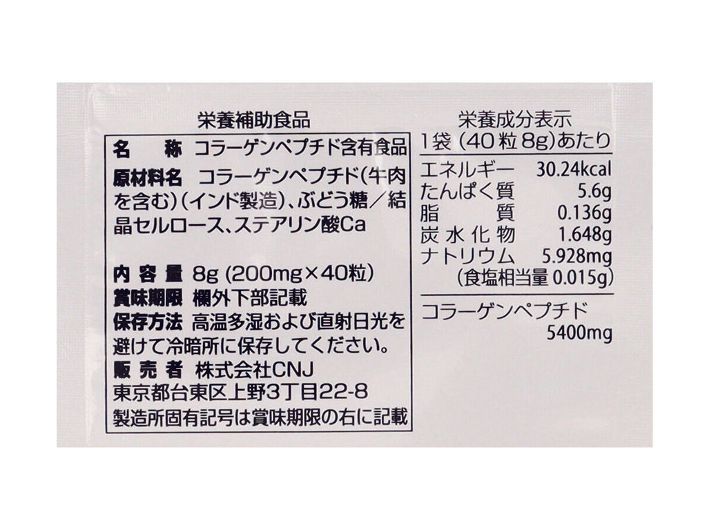 サプリメント コラーゲンペプチド 20日分(40粒) 8g×