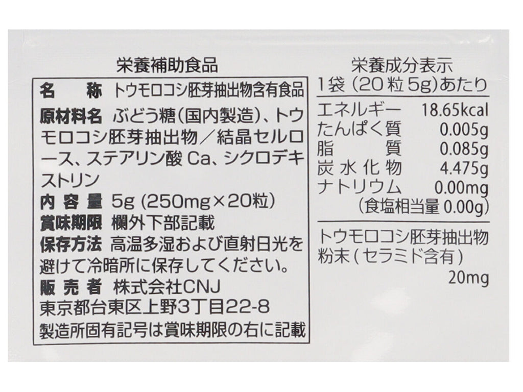 トウモロコシ胚芽抽出物粉末(セラミド含有)_1日1粒あたり1㎎