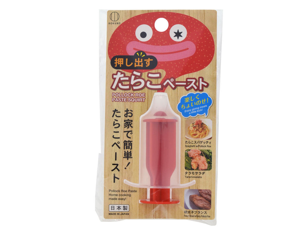 - 商品説明:お家で簡単!たらこペースト 皮を残して粒だけキレイにしぼれるよ 楽しくちょいのせ!たらこスパゲッティ タラモサラダ 耐冷・耐熱温度:-20℃・120℃ご使用方法 たらこを本体に入れ、押し具を装着し、ゆっくりと押し出します。※たらこを入れる際、たらこの先端に切れ込みを入れるとスムーズに出すことができます。ペースト状になって出てくるので、欲しい分だけ押し出せます。残ったたらこの皮は、水洗いで簡単に取り除けます。※たらこが大きい場合は半分に切り、切り口の方から本体に入れてください。※複数回ご使用の場合は、必ず残ったたらこの皮を取り除いてからご使用ください。●ご使用の前に食器用洗剤などでよく洗ってください。●食材は本体内で保存せずに使い切ってください。●本体の先端の穴に指を入れないでください。ケガをする恐れがあります。●食器洗い乾燥機をご使用の際はお使いの機器の取扱い方法に従ってご使用ください。●火のそばや高温になる所には置かないでください。●たわし又は磨き粉で磨くとキズが付くことがあります。●本来の用途以外には使用しないでください。●廃棄時は各自治体の定める方法に従って処理してください。