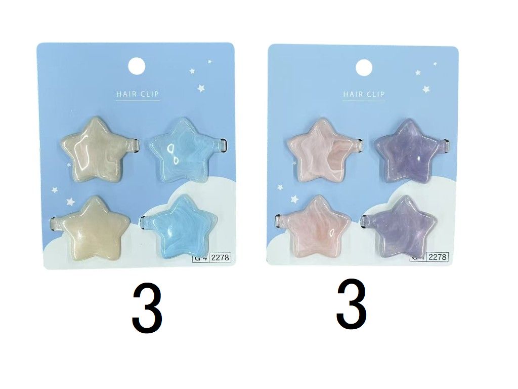 マーブルスターヘアクリップ4Pアイボリー・ライトブルー ピンク・パープル×4個入