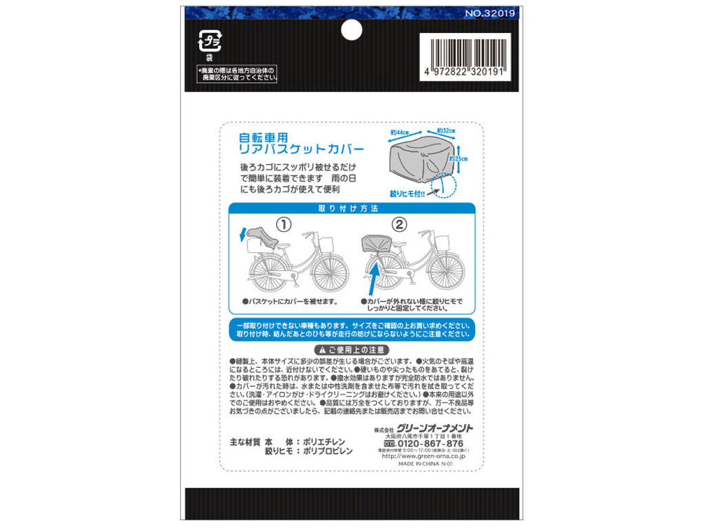 - 商品説明:リアバスケットに被せ、外れないようにひもでしっかりと固定。