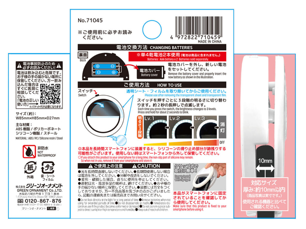 暗い場所でも自撮りや動画撮影が可能。_自撮り、化粧、広告写真、撮影、ビデオ通話にも使用されます。すべてのスマートフォン、タブレットに適しています。クリップ箇所にクッションフィルムがあるのでご愛物を傷つけることはありません。
