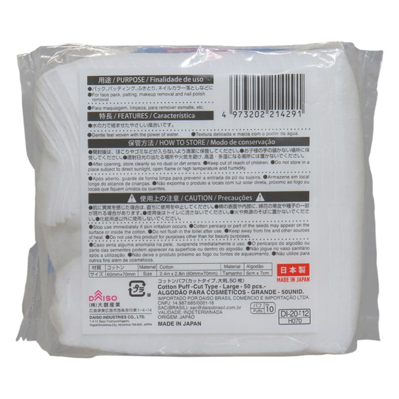 - 商品説明:化粧用コットンパフです。やわらかな肌触りのカット大判タイプです。パック、パッティング、ふきとり、ネイルカラー落としなどにご使用頂けます。