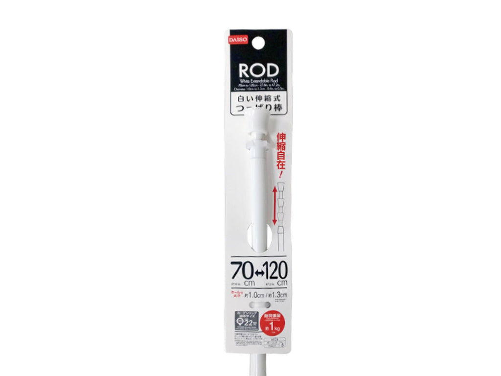 白い伸縮式つっぱり棒約70-120cm(Φ1.0-1.3cm)