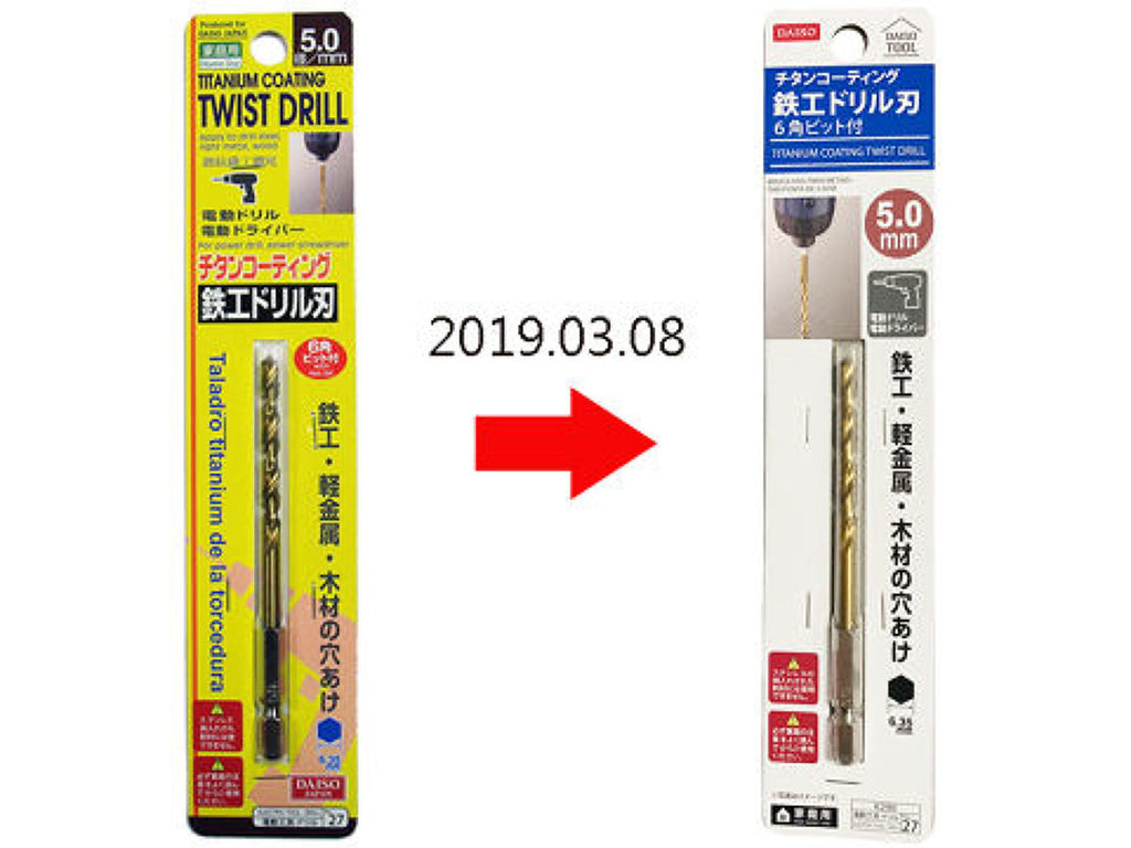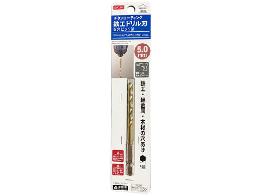 チタンコーティング鉄工ドリル刃5.0mm6角ビット付